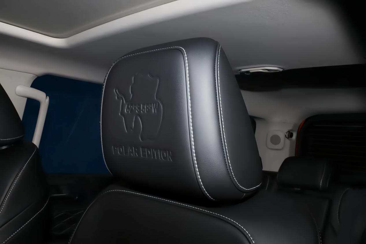 针对极寒环境,极地版增加了一系列专属配置提升适应能力。包括可远程控制的前风挡加热、雨刮喷嘴加热功能,能在-30℃以下的极寒天气中防止风挡玻璃结冰和起雾。车辆还配备了AT全地形轮胎和9500磅无线遥控绞盘,并具备2.5吨牵引资质。