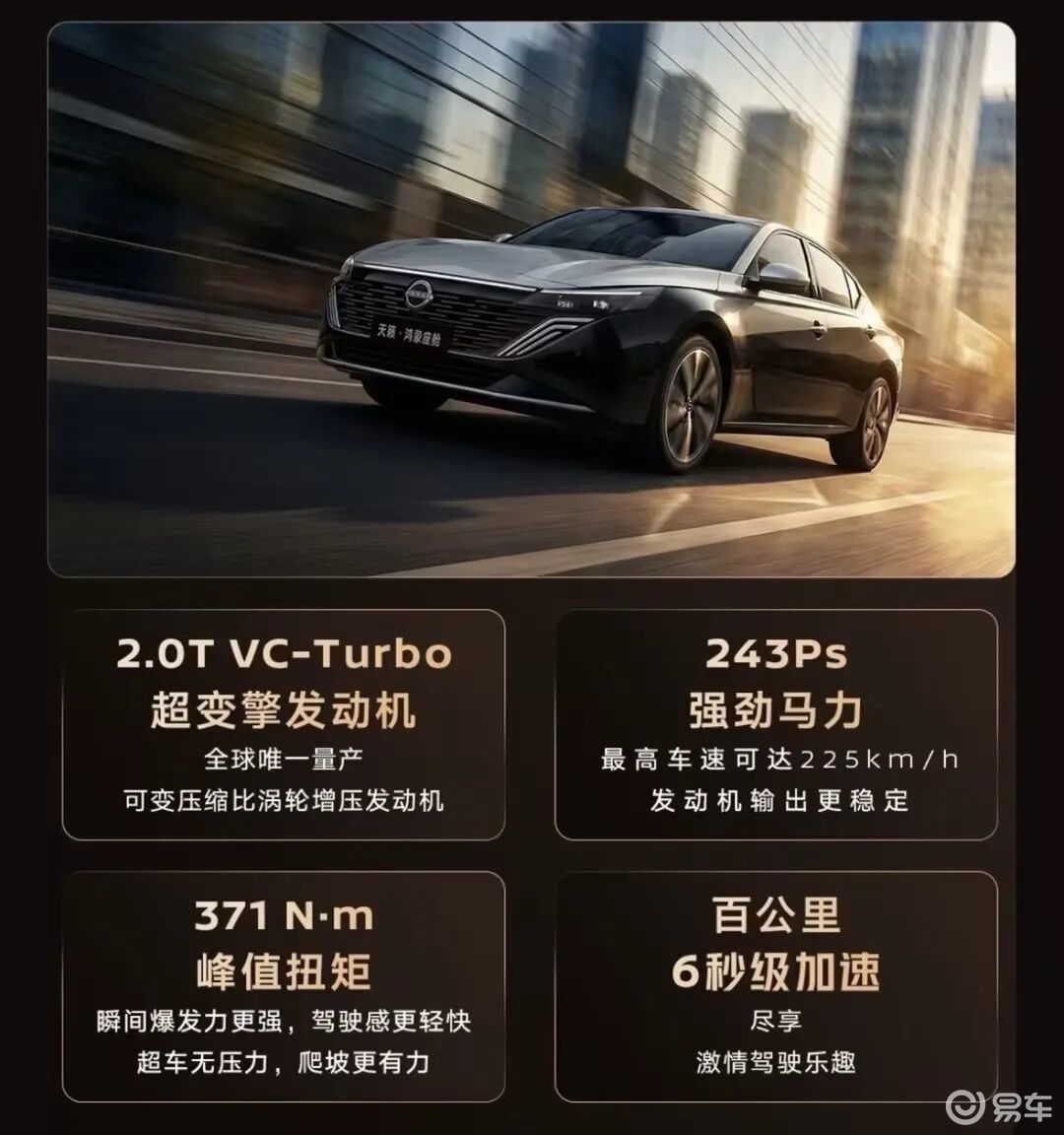 动力还是那台2.0T VC-Turbo,243匹马力,6秒级加速。这套动力放在今天依然能打,平顺性和后段储备比很多小排量涡轮增压强得多。天籁的底子本来就不差,舒适性和静谧性在同级里一直是第一梯队。