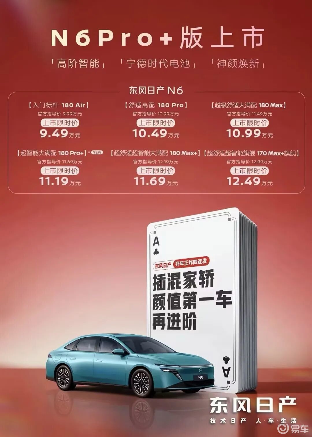 N6 180 Pro+,限时价11.19万。这车是这次四款里思路最清晰的,宁德时代电池+Momenta智驾,直接打在年轻人的刚需点上。