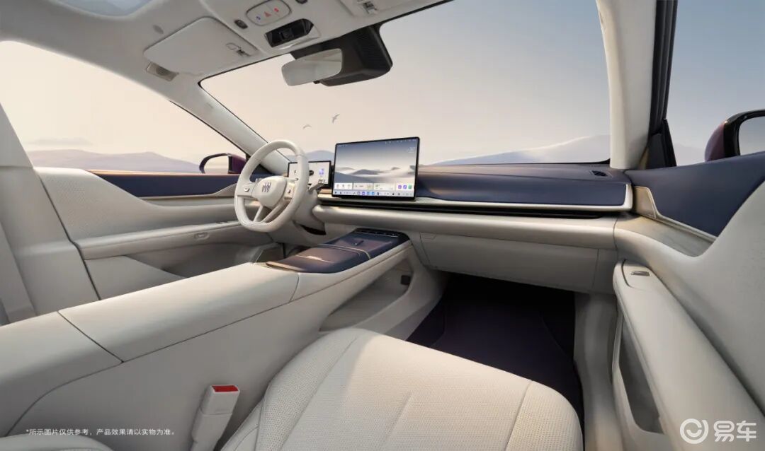 车内更是精致:纯净浮岛美学的内饰,前排270° 的地方都是皮质包裹,摸着手感特别好;座椅用的是无修全粒面 Nappa 高级真皮,软乎乎的,像坐在软沙发上;霞紫月白的内饰配色,还带着点东方的雅致,不浮夸还显档次。