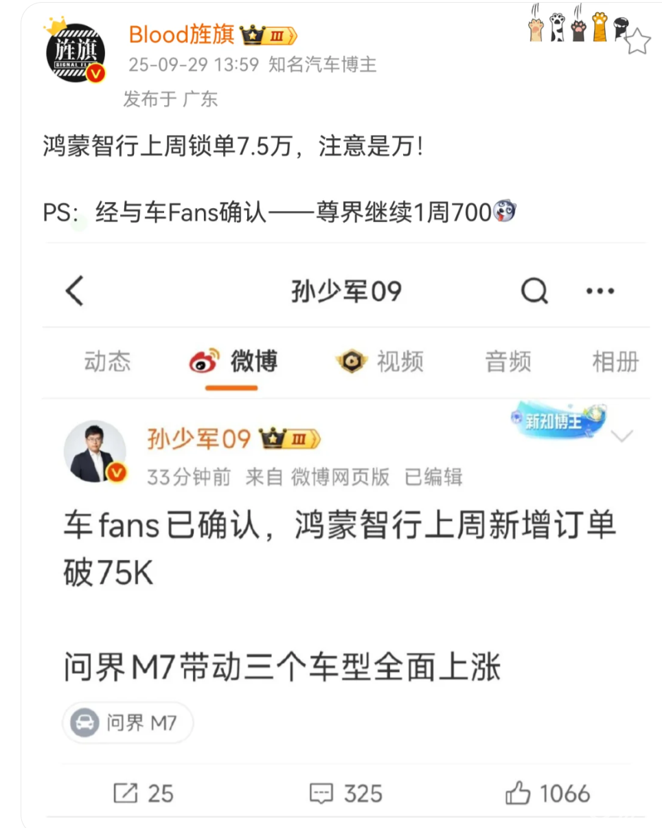 鸿蒙智行单周锁单7.5万,问界 M7 带飞全系