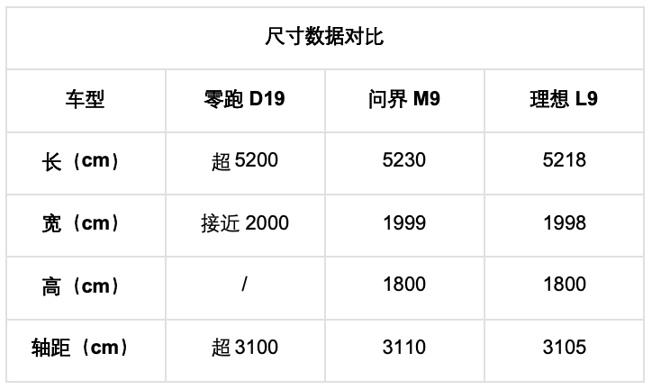 零跑D19定位全尺寸SUV,新车的长度超过5.2米,宽度接近2米,轴距超过了3.1米,问界M9的轴距为3110mm,理想L9的轴距为3105mm,尺寸数据都不错,不过零跑D19的空间利用率更高,第三排座椅能够乘坐成年人,腿部空间能够达到2拳,有的车型第三排只能“应急”,而零跑D19的车内人人都是VIP。并且新车的后备厢常规状态下的容积为500L,第三排座椅放倒之后能够拓展至1800L,满足大件行李的搬运需求没有问题。