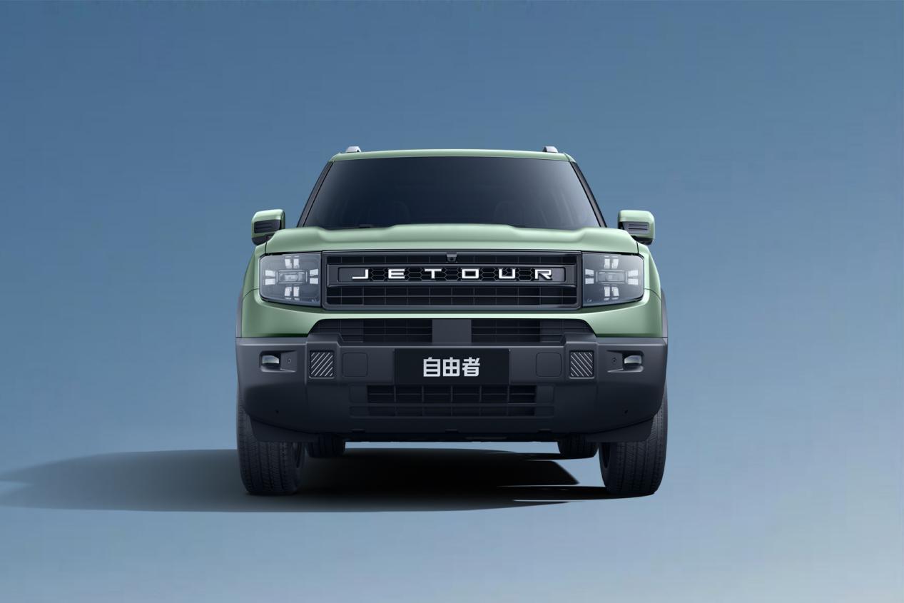 在外观上自由者和猛龙都采用了标准的方盒子SUV设计,但在取向上两者又各有差异。首先自由者在硬朗之余,会通过一些圆润线条以及曲面来进行点缀,兼具硬派与动感,整体观感会更时尚个性一些,迎合年轻用户的审美。而猛龙则是一幅标准硬派姿态,竖瀑中网以及外挂备胎的设计强调越野定位,给人粗犷野性的感觉。