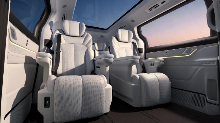 与此同时,吉利银河V900首创“3个1”全球最大空间布局——二排空间超1013mm、三排空间超1013mm、后备箱超1100L,极大程度地提升了空间延展性。200mm的二排中央通道和168mm的三排中央通道皆为同级最宽,总长达2720mm的贯穿通道,让全家人能畅享空间自由。后备箱可轻松容纳15个20寸行李箱,满载7人时容积仍达同级2倍,满足大家庭出行储物需求。
