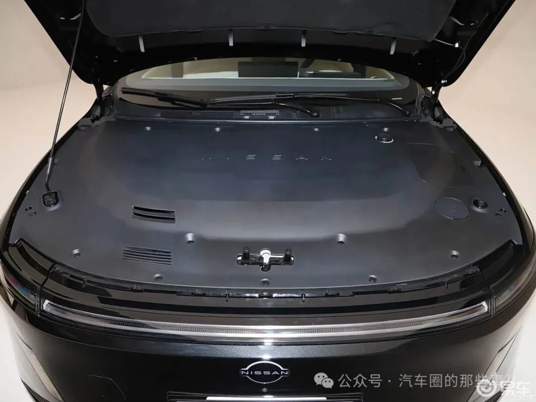 车尾部分,贯穿式尾灯与车头设计形成呼应,熏黑处理更显运动。尾灯组设计细腻,中央的“NISSAN”发光字母标凸显品牌身份。车尾中间的突起与黑色装饰条,为简洁的尾部增添了层次感。东风日产N6的风阻系数为Cd 0.248,整车24处风阻优化,历经78小时风洞测试以及600多轮仿真迭代。