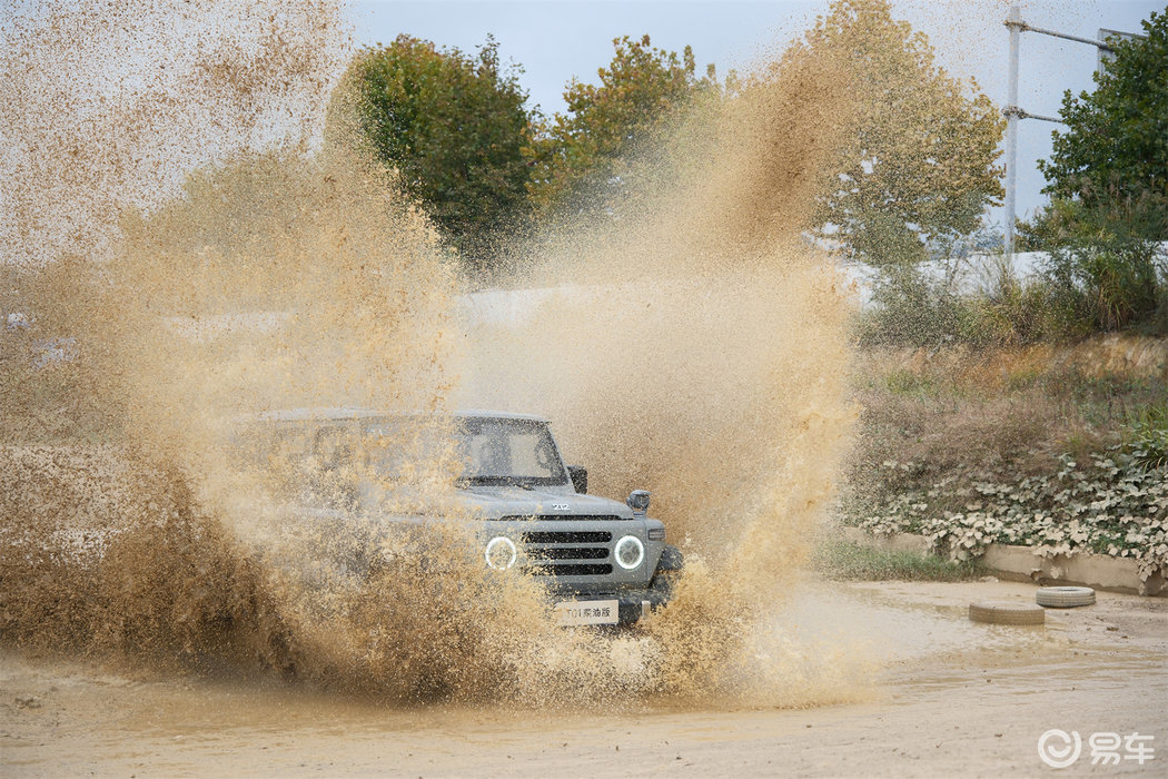 在专业的越野场地内,弹坑、泥坑、驼峰、V型沟等复杂地形都被它轻松征服。开启低速四驱模式后,扭矩能放大2.5倍,再加上标配的后桥差速锁,即使陷入复杂地形,也能轻松脱困。