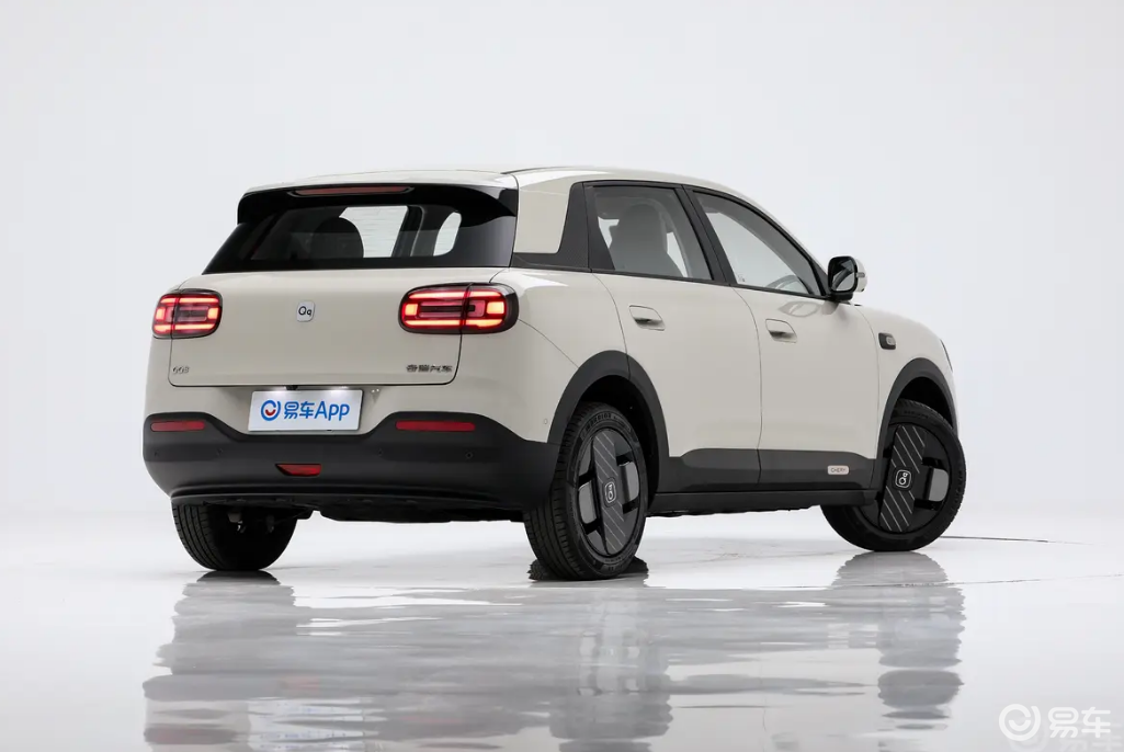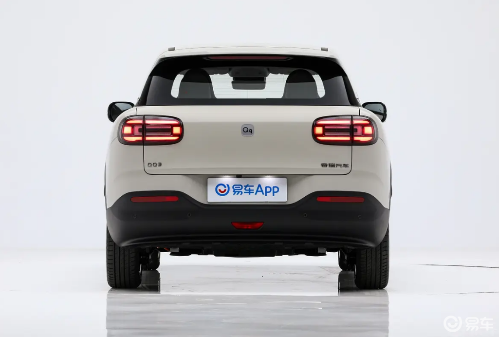 车尾部分,全新奇瑞QQ3 EV的造型与车头相呼应,车顶配备有小尺寸扰流板和高位刹车灯,尾灯组也与前大灯比较相似,点亮后很有辨识度。此外,新车还配备了宽大立体的后包围,凸显出不错的运动气息。