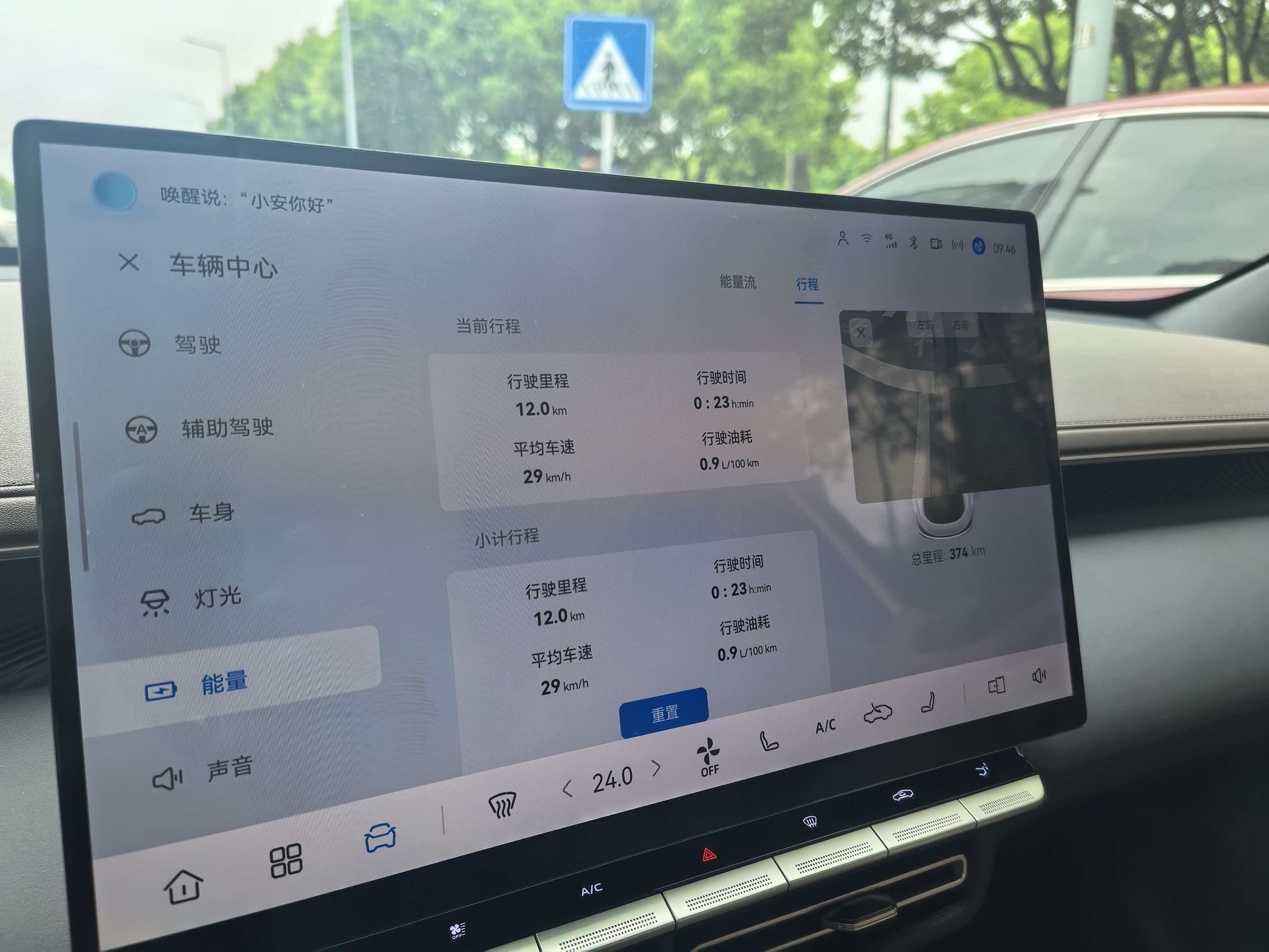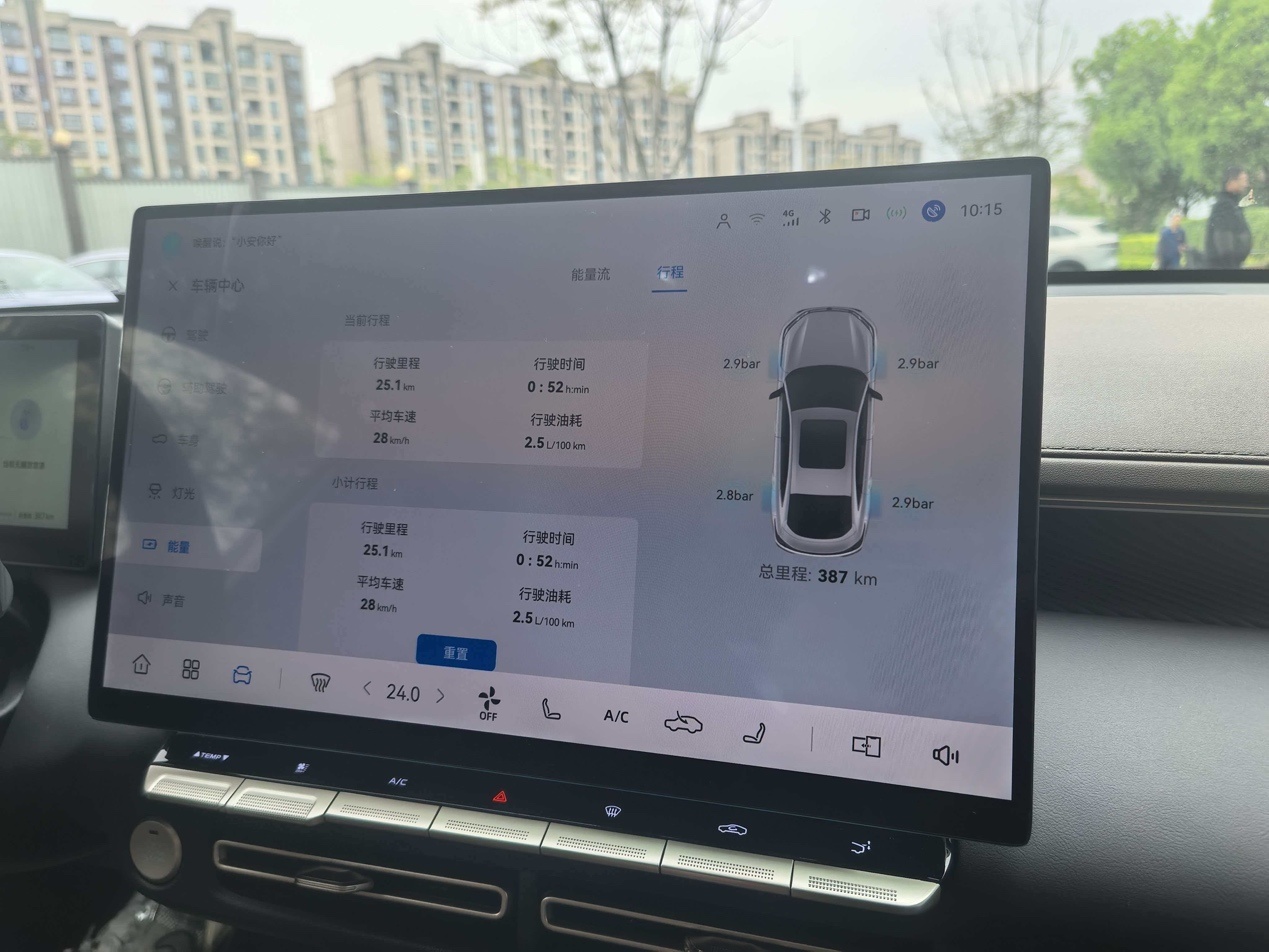 最终跑完回程,回到终点,表显油耗定格在2.5L/100km。要知道,这段路全程虽然没有严重拥堵,但红绿灯、上下坡、加减速,都是日常城区驾驶的真实场景。没有刻意滑行,也没有“龟速”占道,车上还坐了三个成年人。在这样的条件下,跑出2.5L的油耗,确实让我对这套系统的效率有了新的认识。