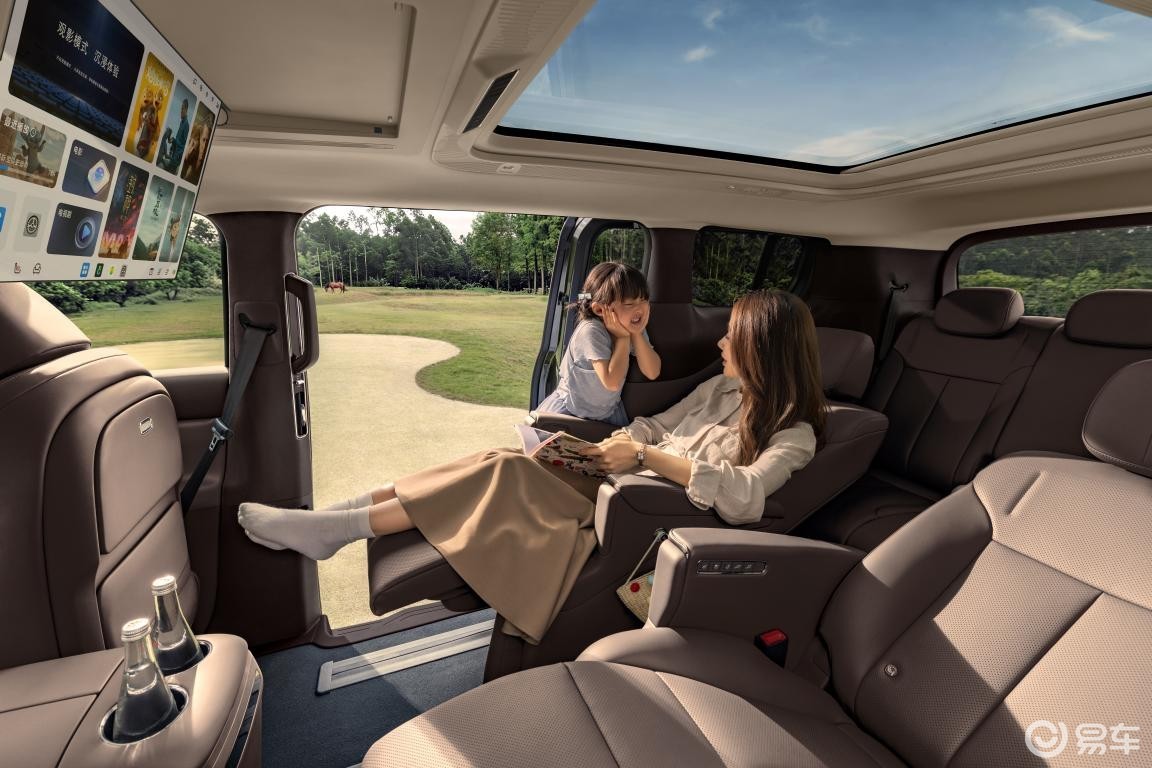 车内配备四温区静感柔风中央空调,采用隐藏式出风口设计,减少直吹带来的不适感;2.77平米的大穹顶天幕拓展了车内通透感;10L智能冷暖箱支持-6℃~50℃的宽温域调节,并具备紫外线杀菌功能。储物空间方面,全车提供40处储物格,后备箱容积在常规状态下为450L,放倒第三排座椅后可扩展至2750L,满载7人时也能容纳7个20寸行李箱,满足家庭出行的储物需求。